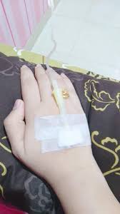Foto tangan di infus menunjukkan bahwa kondisi tubuh tengah tidak baik.