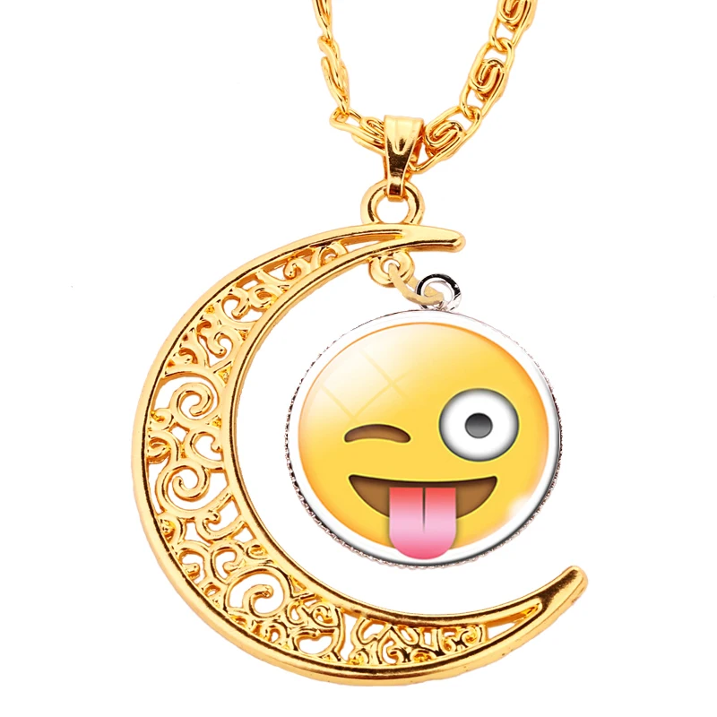 Us 0 99 40 Off Suteyl Bulan Kalung Emoticon Emoji Gambar Kubah Kaca Kubah Pendant Rantai Kalung Fashion Perhiasan Kalung Untuk Wanita Di Liontin
